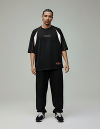 The PRISON® over 93 black oversized t-shirt was designed for performance and absolute comfort in everyday life. The design of This raglan t-shirt leaves the shoulders free, accentuates the width of the torso, and provides superior mobility – a true hallmark of the oversized raglan t-shirt . The high-quality PRISON® front print maintains the streetwear look.