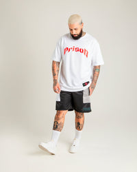 - Details: Thick ribbed collar and official Prison NY basketball-style label on the hem of the t-shirt.