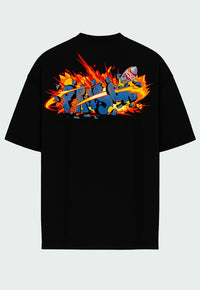 The PRISON® Nuclear Black T-Shirt delivers an even more intense visual impact, with a black base that reinforces the contrast of the exclusive, explosive-style artwork . The design features a nuclear missile piercing the PRISON® logo amidst flames and fragments, creating a strong graphic statement within streetwear.